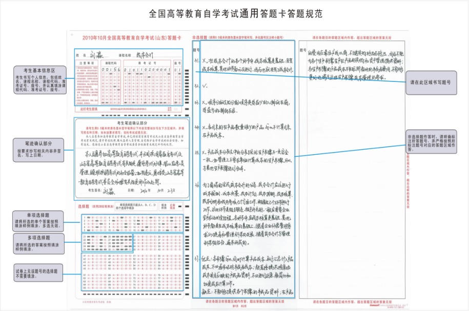 安徽省高等教育自学考试均采用答题卡作答形式。考生注意在答题卡指定的横线上和书写方框内填写个人信息。每个书写方框只能填写一个阿拉伯数字。并保持答题卡卷面整洁,不得折叠、破损、污染,不能在非填涂区域乱写乱画。