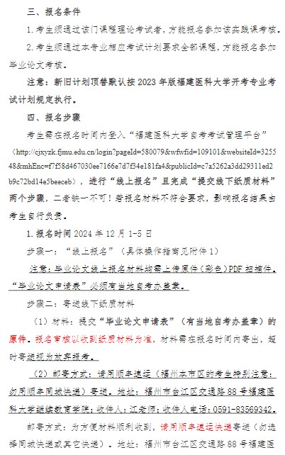 附件1:福建医科大学自学考试平台考生实践性环节(含毕业论文考核)报名操作指南