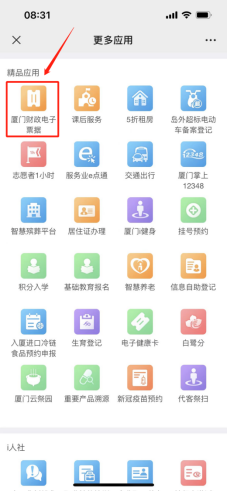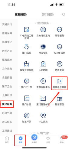 【i服务】-【更多服务】-【财政电子票据】