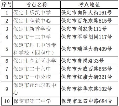 [河北]2023年10月保定市自考考点考场分布