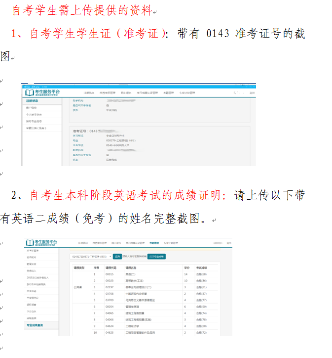 成人网络自考学生请正确无误非常清晰地上传相关资料,若提供虚假资料后果自负。若有疑问可联系考生本人的助学学校自考办及主考学校自考办。