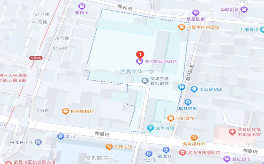 方案一 乘坐轨道交通5号线司门口黄鹤楼地铁站B口,步行300米至武昌文华中学;