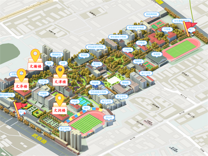 就餐指引:校内食堂、学校周边均可就餐。