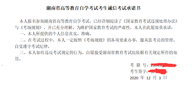 注:身份证件是确定考生身份的重要依据。新生入籍时还必须如实填写专业、专业层次、联系电话及通讯地址等各项基本信息,考生姓名、住址等基本信息必须与身份证件一致,其联系方式必须真实有效。老考生报考时,若联系电话一栏不是惯常使用或无法申请“湖南健康码”的,须自行修改;若身份信息(姓名、性别、身份证号码等)与实际使用不相符的,须申请修改身份信息待审核通过后方能报考。否则不能参加考试。