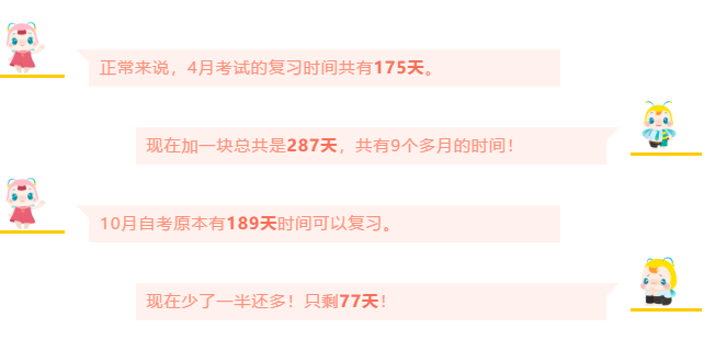 从更初我们推测自考会推迟到5月份、6月份......到前一段时间我们猜测推迟到7月中下旬,甚至有不少小伙伴猜测4月份的考试取消或与10月的合并了......如今终于是尘埃落定。