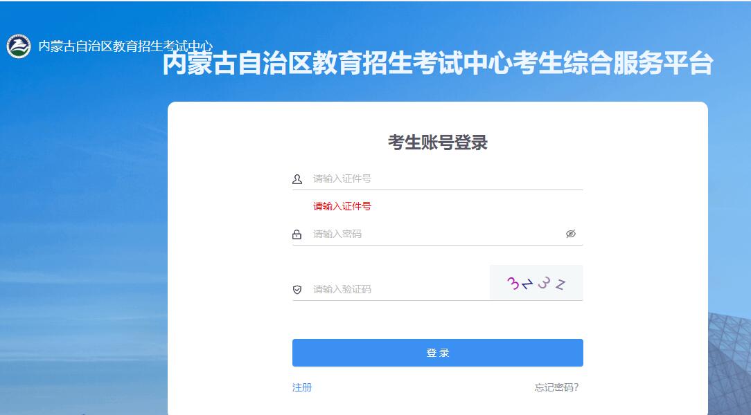 3、进入内蒙古自治区教育招生考试中心考生综合服务平台后,使用身份证号、密码及随机验证码登录,即可查询本次10月份的考试成绩。