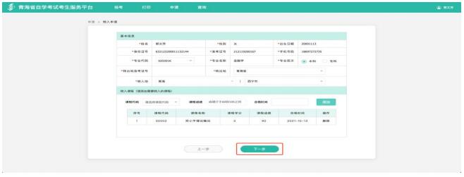 (3)根据系统提示,依次填写转入申请表单,点击“下一步”;