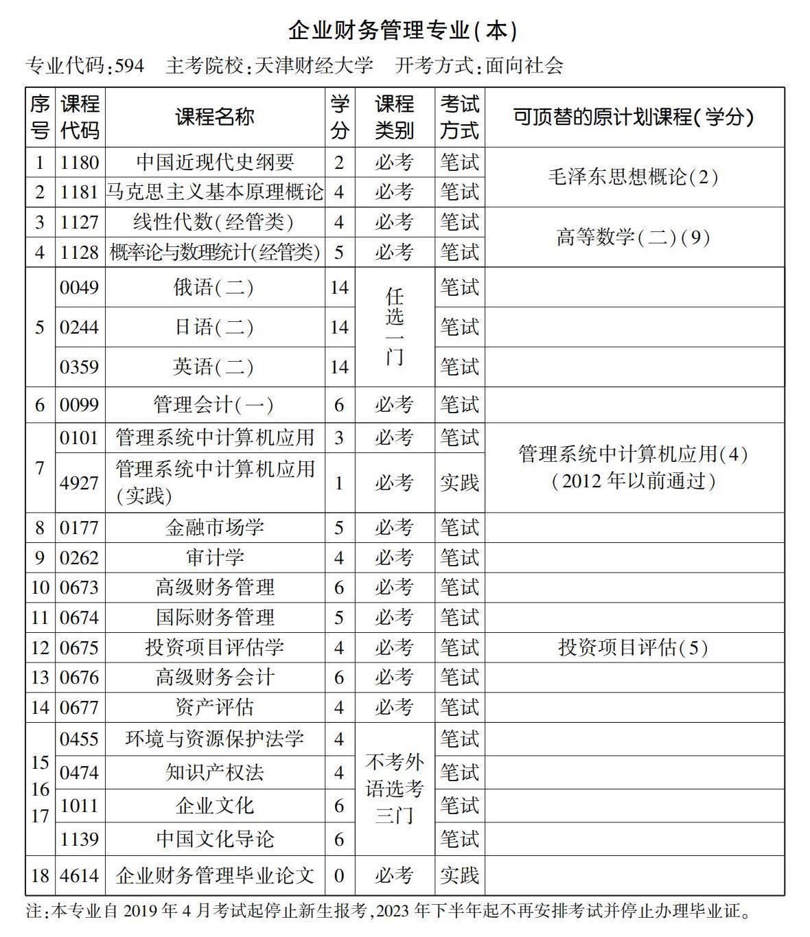 2022年10月天津自考本科企业财务管理专业计划(停考过渡)