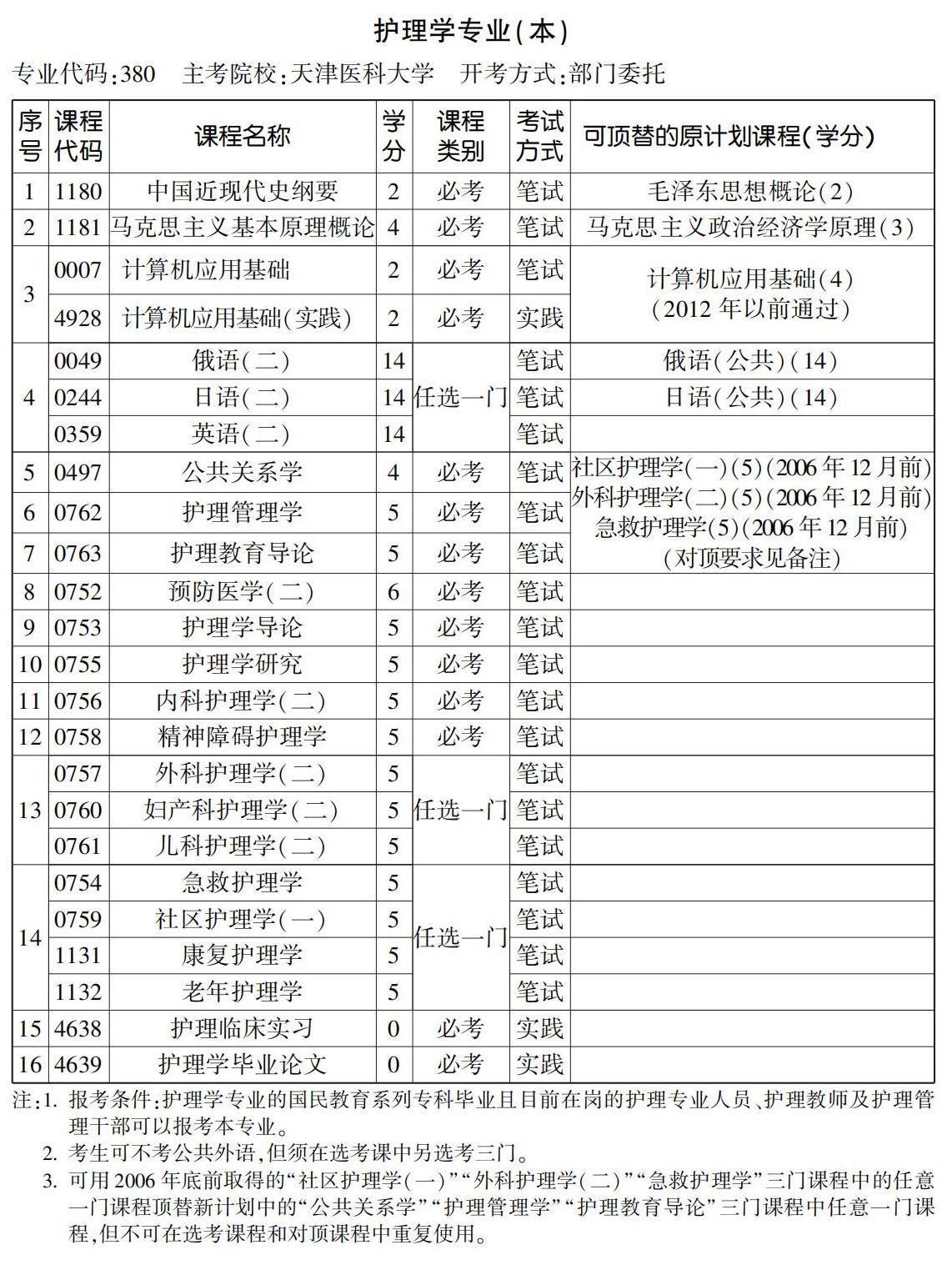 2022年10月天津自考本科护理学专业计划