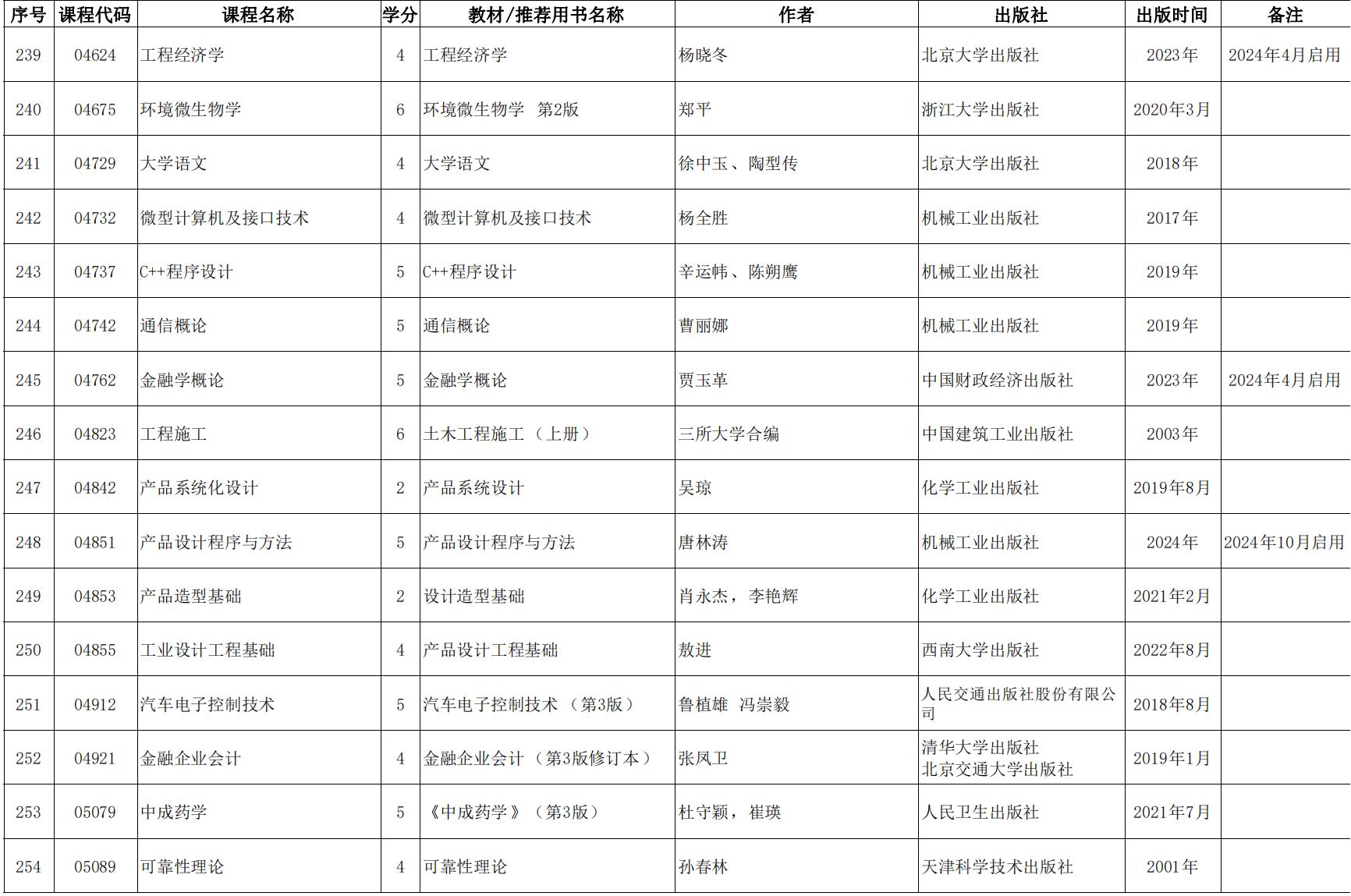 2024年天津市高等教育自学考试课程考试时间安排及课程使用教材发布通知_44