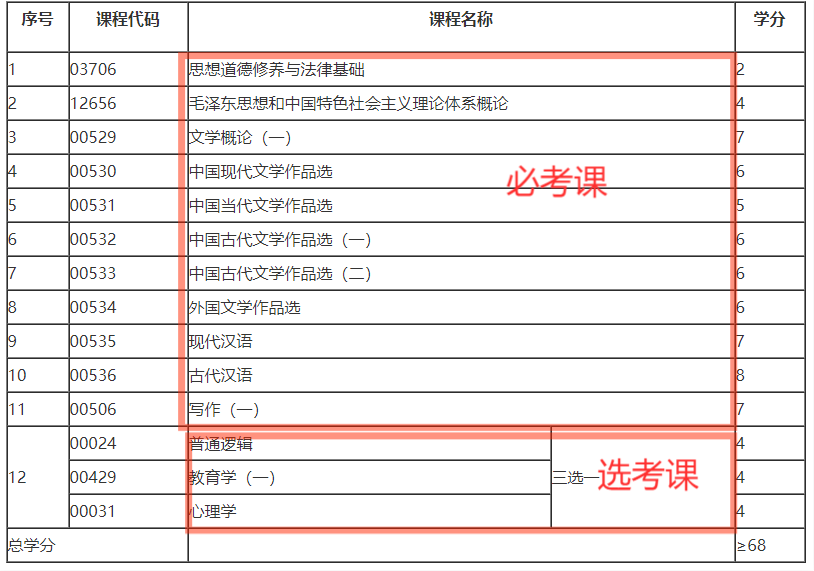 浙江自考汉语言文学专科毕业需考过13门课程(如下图所示),其中,8门必考笔试课,2门实践课,3门选修笔试课。(直通车→2021年10月浙江自考专业及主考院校一览表