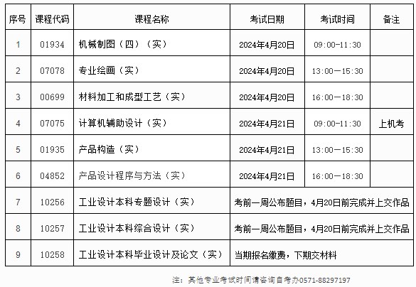 浙江树人学院自考工业设计专业主考社会生专业实践课考试安排