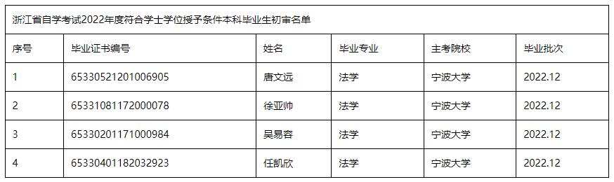 宁波大学2022年度自学考试本科毕业生申办学位名单通知